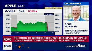 Ross Gerber discusses Apple's CEO transition to John Ternus, expressing strong support and a bullish outlook. He emphasizes the need for innovation in hardware, particularly AI glasses, and potential strategic shifts under new leadership.